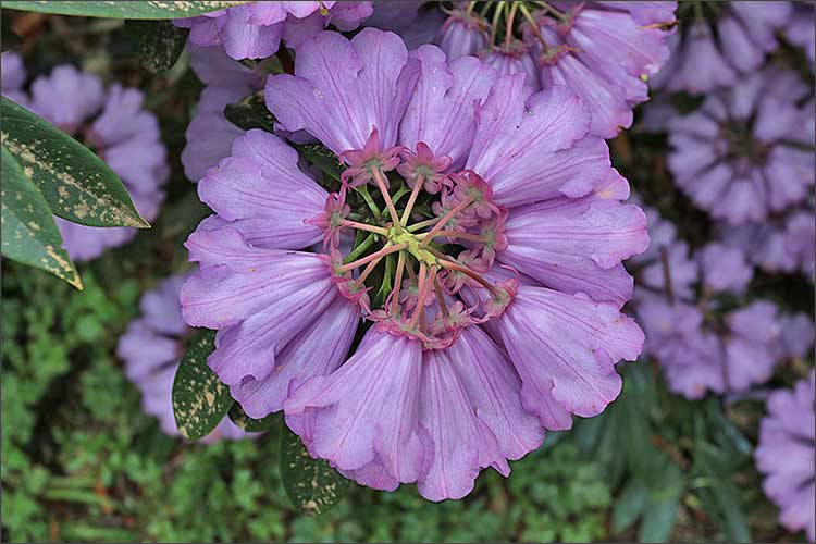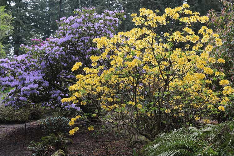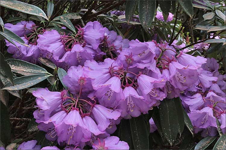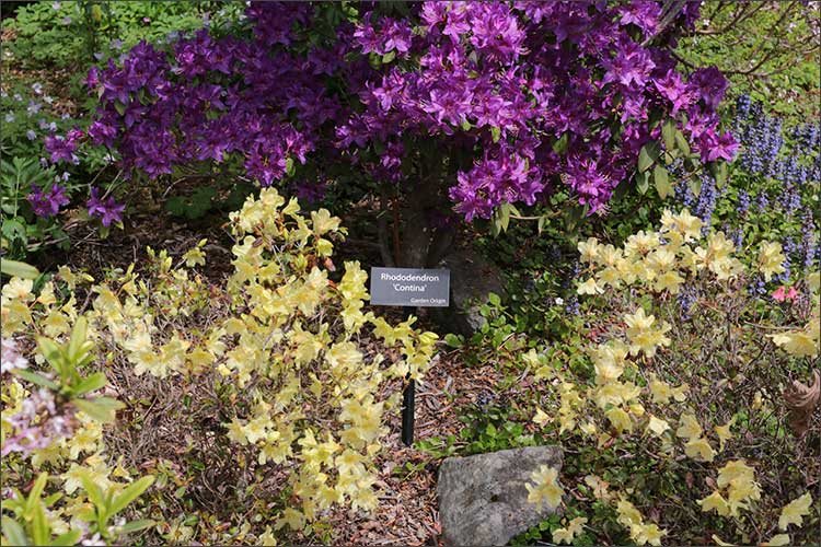 LE RHODODENDRON SPECIES BOTANICAL GARDEN A FEDERAL WAY (USA) Après 10 heures de vol direct Paris-Seattle (pour me rendre à la Convention 2022) sans compter les heures d'attente à Charles de Gaulle et les heures pour passer les différents contrôles et récupérer la voiture que j'avais louée me voici enfin à l'entrée du RSBG. Une petite cour sépare le portail d'entrée du batiment où l'on s'acquitte du droit de visiter ce jardin. Des augustiniis de belle taille bordent cette cour ![]() Petit privilège de membre : il me suffit de montrer ma carte pour passer sans bourse délier. C'est certainement intéressant si vous résidez aux environs et l'adhésion est vite remboursée par des visites fréquentes. Je ne peux pas en dire autant. Le point de vente des plantes multipliées par le RSBG se situe tout de suite, à droite, après l'entrée. Je ne peux m'empêcher d'avoir un sourire en voyant que le RSBG vend du Cunningham's White. Bizarre ? ![]() Il y a beaucoup de monde : nous sommes le dimanche 1er mai mais pas beaucoup de fleurs. Je vois avec plaisir que les plants de R. huanum sont en fleurs. Je fais le même constat que lors de ma dernière visite : l'un des trois plants surclasse nettement les deux autres par l'abondance de son feuillage et surtout de ses inflorescences. ![]() ![]() Le mariage bleu et jaune fonctionne très bien. ![]() ![]() Il y a plusieurs R. lacteums en fleurs dans le parc mais je ne peux pas dire qu'ils m'emballent : leur couleur jaune est assez fade et aucun ne présente une macule rouge prononcée. ![]() C'est loin de ressembler à la gravure publiée par le Curtis Botanical Magazine. ![]() Ou de ce que j'ai pu admirer lors d'une visite à Edimbourg. ![]() S'il y a très peu de fleurs les pousses nouvelles sont toujours un sujet de curiosité. ![]() R. proteoides. ![]() ![]() R. roxieanum var. roxieanum. ![]() R. roxieanum var. oreonastes. ![]() Je quitte le RSBG au bout de deux heures : j'ai encore une heure de route pour mon hôtel. J'avais prévu d'y passer la journée entière du lundi après la Convention mais ... j'ai découvert trop tard que le RSBG est fermé le lundi. |