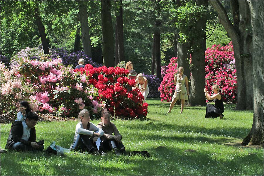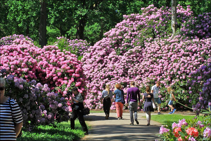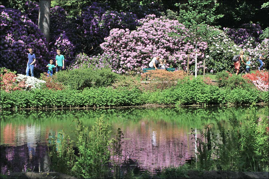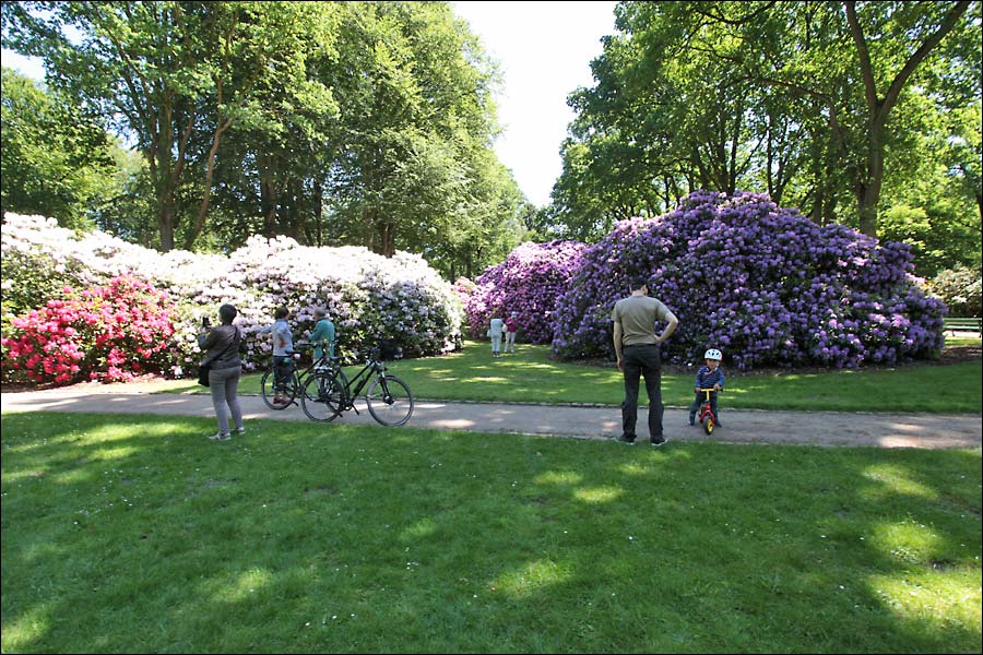 LE RHODODENDRON PARK A BRÊME (ALLEMAGNE) Curieusement, la Convention partait du dimanche soir 19 mai mais les activités ne commençaient que le mardi 21 mai. J'avais donc programmé la journée du 20 mai chez Harchmann puisque, contrairement à 2010, la visite de sa pépinière n'était pas prévue. Avant de partir en direction d'Hambourg je tenais à m'assurer que la pépinière était bien ouverte car c'était le lundi de Pentecôte. Hartwig Shepker me confirma mes craintes : la pépinière Hachmann était fermée. Plusieurs options de secours se présentaient à moi ; j'obtai pour le Rhododendron Park de Brême. Après plusieurs allées et retours dans la Marcusallee qui longe le parc je trouvais enfin une place où me garer. Il faisait beau et nous étions le lundi de Pentecôte : les places étaient plus que rares. Entrée par la Marcusalle. ![]() ![]() Dès l'entrée je constatai que, comme la veille à l'arboretum Belmonte (Hollande), la chaleur et la sécheresse étaient présentes et il n'était que 10H00. ![]() Partout les gens profitaient de cette belle journée, chacun à sa manière. ![]() ![]() ![]() ![]() ![]() ![]() La plus grosse "activité" consistant à se faire photographier parmi les rhododendrons. ![]() Suis-je bien sur cette photo ? ![]() Les R. catawbiense et leurs hybrides étaient à leur apogée. Une splendeur. Devant ces merveilles je pensais : Catawbiense, oui ; ponticum, non ! ![]() ![]() DIAPORAMA => Cliquez sur une vignette pour l'agrandir. |