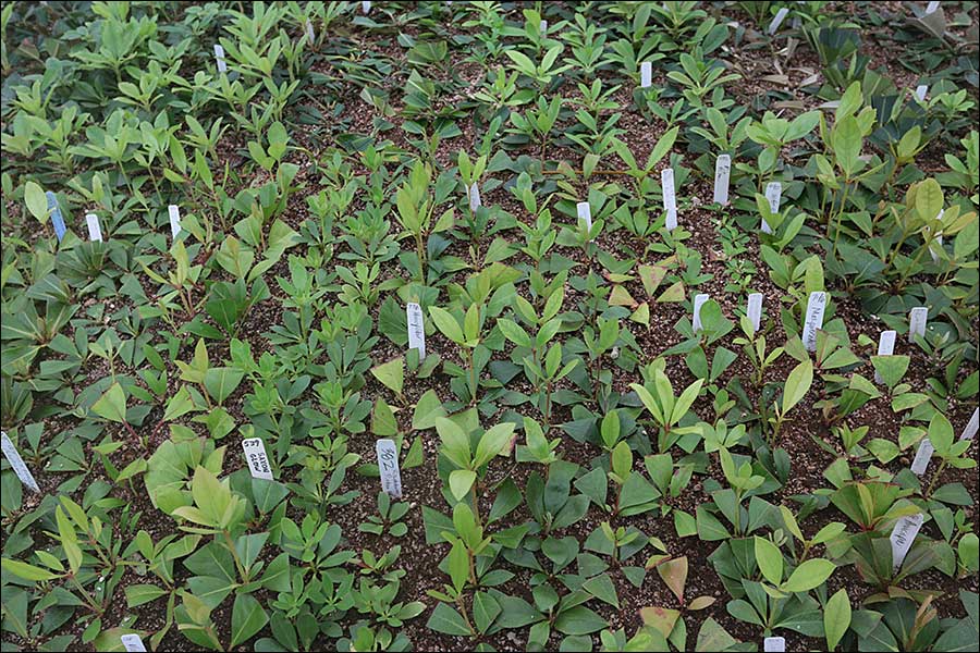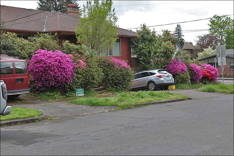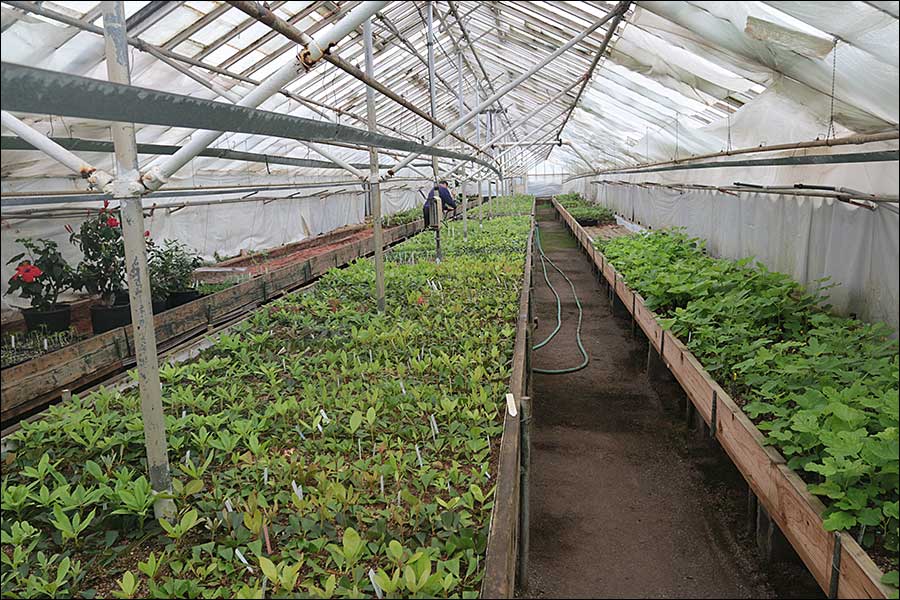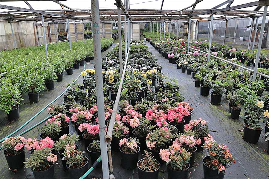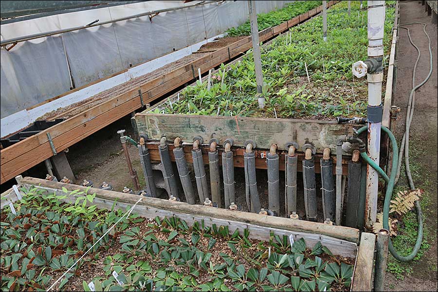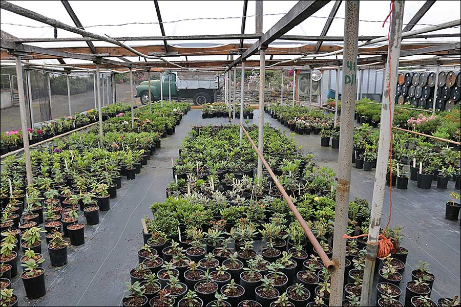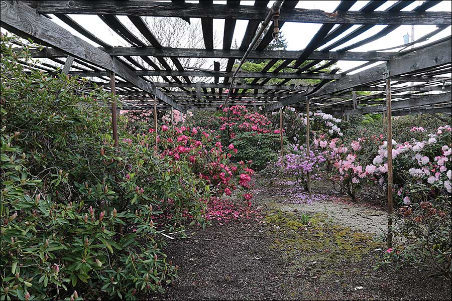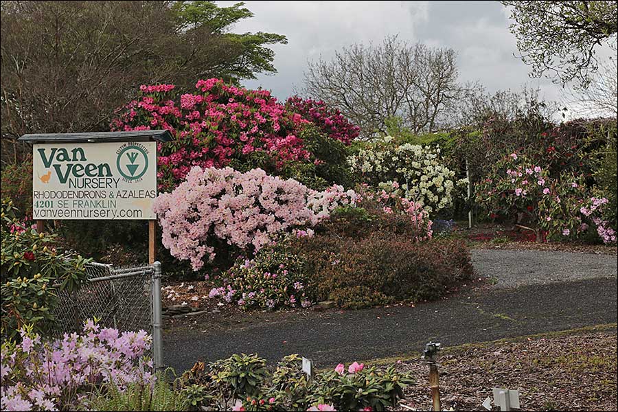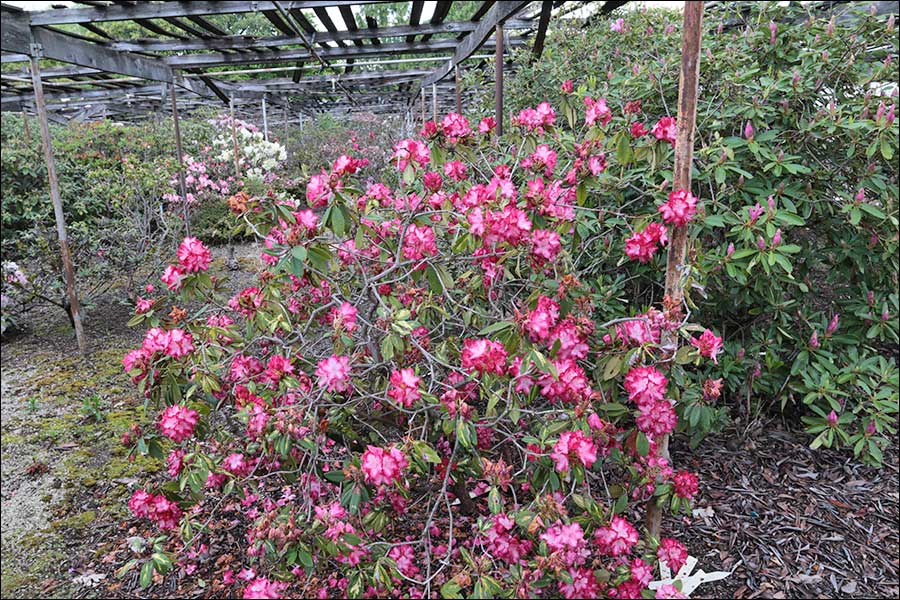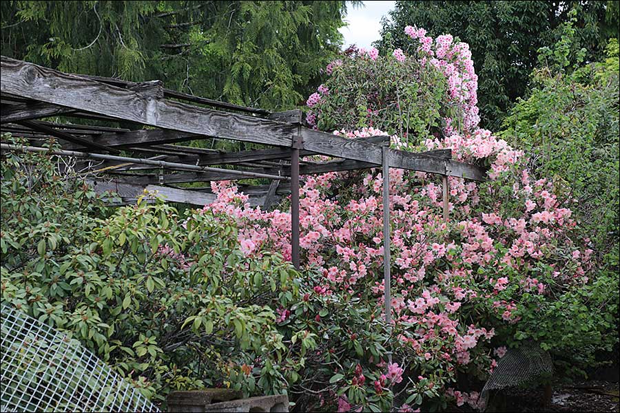 PÉPINIÈRE VAN VEEN À PORTLAND (USA) J'arrive de bonne heure pour visiter cette pépinière que je connais bien. Ma première visite remonte à 1995 quand Ted Van Veen, le père de Kathy, était encore en vie. Kathy dirigea ensuite la pépinière de 2003 jusqu'à sa mort en 2017. Elle ne laissait aucun héritier et la pépinière commença à péricliter. ![]() Après quelques années d'abandon, devant la disparition programmée de cette pépinière réputée pour ses succès dans le bouturage, le chapter de Portland a repris à son compte les activités de commercialisation. Malheureusement la pépinière est fermée. Je pense que je suis arrivé trop tôt et en attendant l'ouverture j'arpente la rue SE Franklin. ![]() J'avais noté des années auparavant que toutes les maisons étaient entourées d'arbustes fleuris et que les Américains étaient réfractaires à la clôture de leur propriété. ![]() De la rue je peux voir quelques plants qui me font patienter. ![]() Cela fait maintenant presqu'une heure que je déambule le long du grillage de la pépinière. ![]() Une dame qui a tout deviné de mon manège vient me signaler que le "gardien" habite la maison juste à côté. Je la remercie et, par chance, celui-ci est devant sa maison. Je me présente et lui explique que j'aimerais visiter la pépinière si cela est possible. No problem. ![]() Nous nous dirigeons aussitôt vers l'unité de multiplication. Il en profite pour arroser quelques plantes dans l'unité de multiplication. ![]() Puis, au bout de quelques minutes, il s'en va en me recommandant de fermer la porte en partant. Je constate tout de suite que les boutures sont saines. ![]() ![]() ![]() Je déchiffre quelques noms : R. macabeanum. Il ne me serait pas venu à l'idée de le bouturer. ![]() Et encore moins le rhododendron Fortune. Je tire légèrement sur les feuilles et je sens que la bouture est racinée. Bravo. Je note que les bourgeons terminaux ont été coupés. ![]() J'examine les "outils" : le thermomètre indique 20°C. ![]() Cet instrument régule l'arrosage : quand il se met en route, de l'eau se fixe sur la feuille horizontale située à l'extérieur en haut du mécanisme. Sous le poids de l'eau la feuille s'abaisse légèrement ce qui coupe le courant électrique de la pompe. Au bout d'un certain temps, cette eau s'évapore, la feuille allégée remonte et remet le contact électrique de la pompe. Je crois que cet ingénieux système a été inventé par les Hollandais . ![]() La chaleur de fond nécessaire au bouturage est fournie par des tuyaux d'eau. ![]() ![]() ![]() Les cumulus sont juste à côté de la porte que je referme derrière moi. ![]() Les boutures racinées sont ensuite entreposées dans deux bâtiments où elles resteront jusqu'à atteindre une taille commerciale. ![]() ![]() Tout le reste de la pépinière est à l'abandon. ![]() ![]() ![]() Quelques rares plantes ont réussi à survivre et présentent de magnifiques inflorescences. ![]() Malheureusement le système d'étiquetage n'a pas résisté au temps : toutes les étiquettes sont illisibles. ![]() Je n'ai pu mettre un nom que sur celui-ci dont les caractéristiques sont si particulières : rhododendron Viscy. ![]() Beaucoup de plantes sont mortes et je quitterai la pépinière sur un sentiment de tristesse. ![]() |