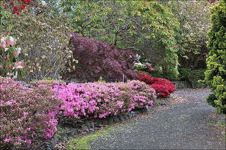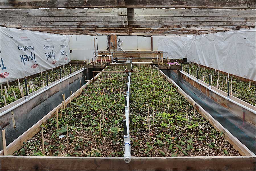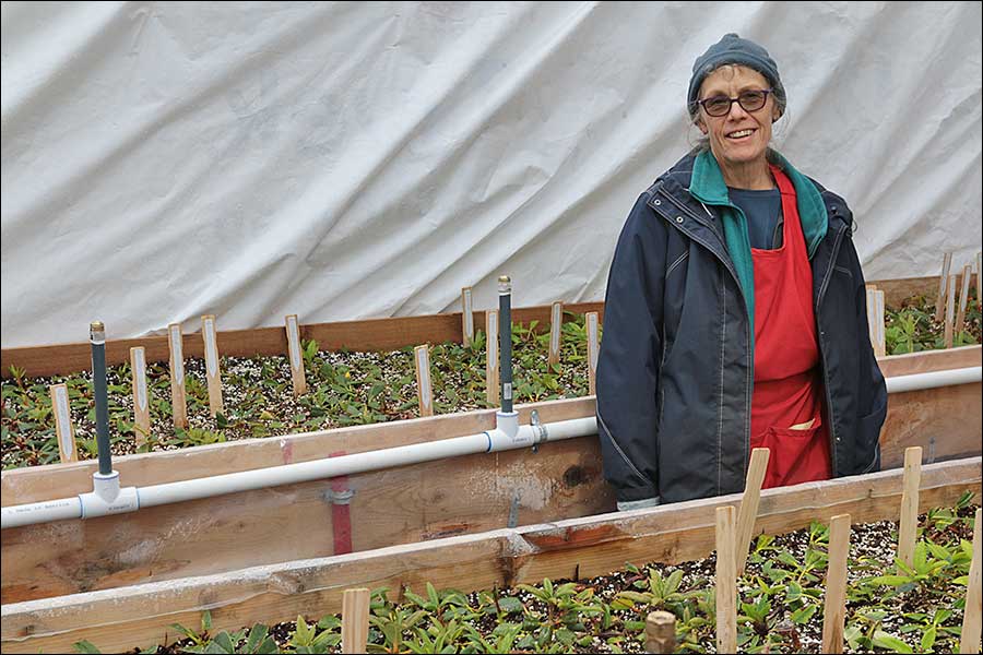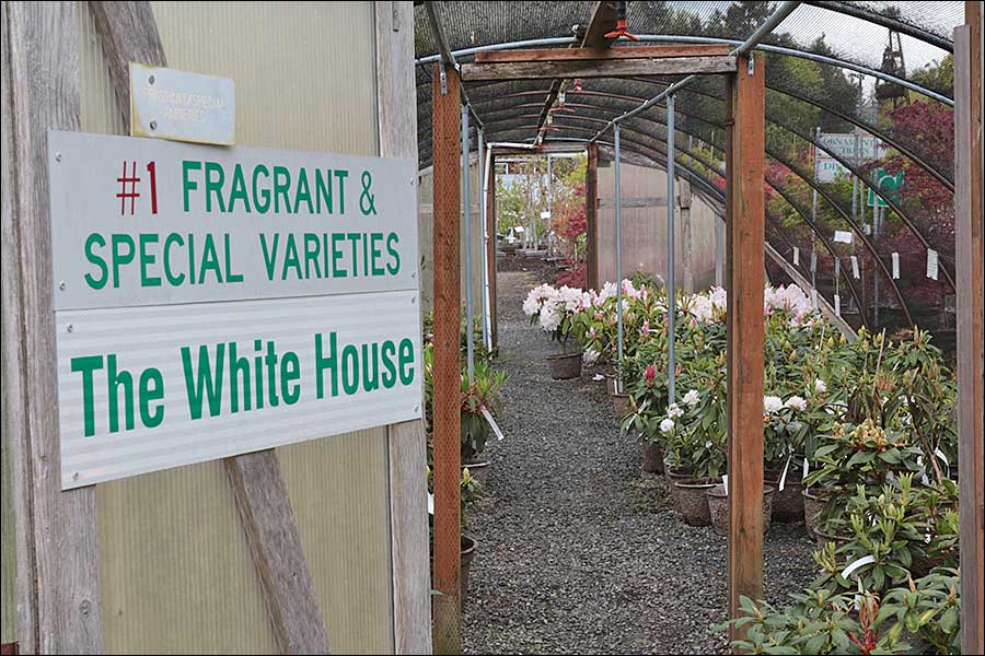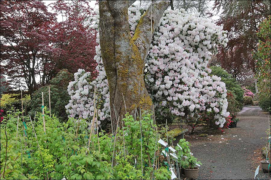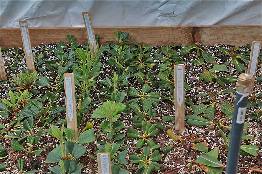 Pépinière Whitney (USA) La pépinière Whitney se situe à Brinnon dans l'état de Whashington (USA). ![]() De grands arbres dont des rhododendrons bordent le parking. En rose Dame Nellie Melba. ![]() La maison d'habitation ainsi que les locaux de la pépinière sont proches du parking. A droite, un coin repos avec un accès wifi qui permet de vérifier la parenté de certains hybrides dont le pollen pourrait être utilisé. ![]() La maison d'habitation est flanquée d'un vieux rhododendron Chevalier Felix de Sauvage. ![]() L'ensemble peut être divisé en deux parties sensiblement égales : le "jardin" avec une collection de rhododendrons mêlant des anciens, des nouveaux hybrides, quelques espèces et une partie pépinière. ![]() ![]() ![]() ![]() ![]() ![]() ![]() ![]() Quelques vieux rhododendrons présentent des écorces remarquables. ![]() ![]() Un ruisseau coule en bordure sud. ![]() ![]() La mer est à 200 mètres => vecteur d'humidité de l'air. ![]() ![]() La section pépinière peut également être divisée en 2 parties ± égales : les serres et les plantations en pleine terre. ![]() ![]() Toutes ne sont pas ouvertes au public. ![]() ![]() Quelques (rares) plantes, en petites quantités, ne sont pas des rhododendrons. ![]() ![]() La propriétaire, Ellie Sather étant alitée suite à une intoxication alimentaire, c'est la responsable qui m'a fait visiter l'unité de multiplication. ![]() ![]() ![]() 82°F = 28°C. Oops ! Je pense que ce thermomètre est hs. ![]() Comme presque partout aux USA la chaleur de fond pour le bouturage des rhododendrons est fournie par de l'eau chaude. ![]() C'est toujours un plaisir de visiter cette pépinière : la propriétaire, le personnel sont aimables et les plantes sont belles. What else ? |